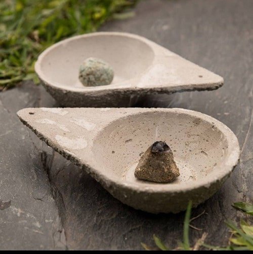 Quemador de incienso natural hecho con cemento y manteniendo su color natural.