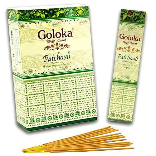 Incienso Patchouli Goloka es un incienso de Pachuli de la familia de los incienso Massala y está compuesto por una mezcla única de hierbas, flores, miel, resinas y aceites naturales.