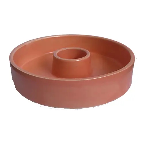 El quemador tiene una base redonda de 14 cm de diámetro y una altura de 3 cm. Está hecho de cerámica esmaltada, lo que lo hace resistente a las altas temperaturas y fácil de limpiar.