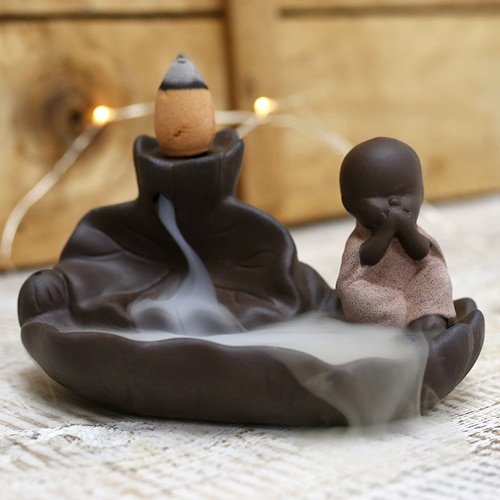 Quemador de incienso de reflujo fuente Monje Silencio
