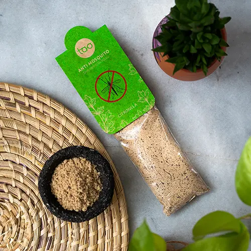 Elaborado de forma artesanal con ingredientes naturales, este incienso en polvo libera un aroma fresco y vibrante a citronela, ideal para repeler insectos de forma natural.