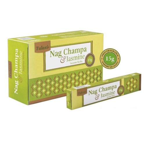 Incienso Tulasi Nag Champa Jazmín con una composición aromática con intensos matices florales y aroma fresco.