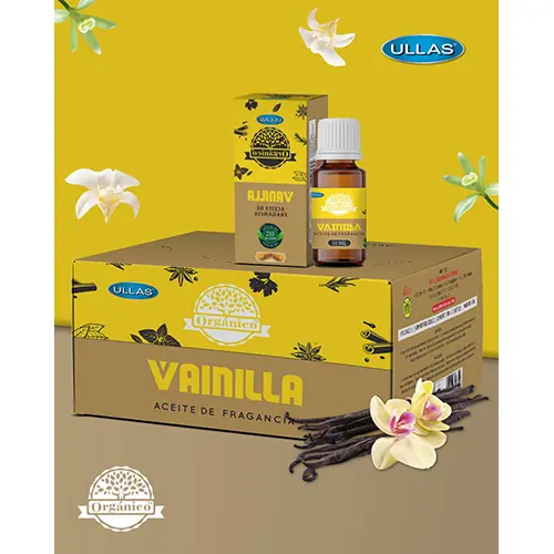 Aceite aromático de vainilla Ullas, para difusores de aromas y esencias aromáticas con grandes propiedades y beneficios al quemarse en humidificador o quemador de aceite.